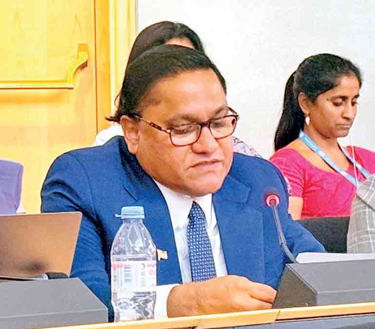 Sri Lanka’s delegation to Geneva was led by Minister Vijitha Herath, along with Permanent Representative Ambassador Himalee Arunatilaka, Director General/UN and Human Rights Dayani Mendis, and diplomatic officers of the Permanent Mission.
