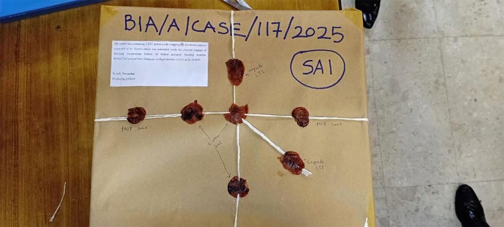 The 39-year-old passenger, who arrived from Kuala Lumpur on SriLankan Airlines flight UL 315 on October 26, was apprehended by the Customs Narcotics Control Unit following a detailed inspection that uncovered 2.8 kg of heroin concealed inside a modified compartment in his luggage.