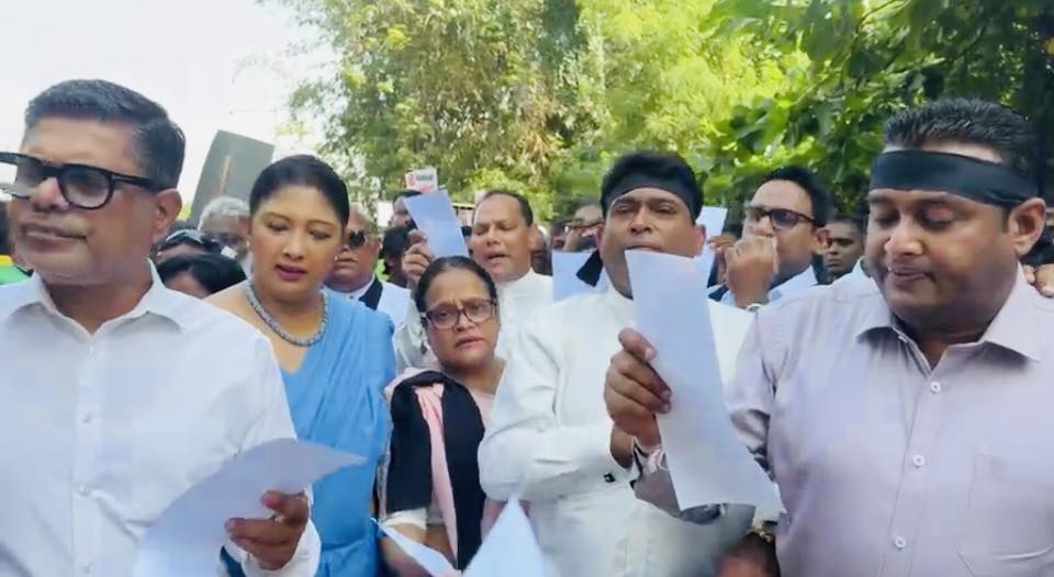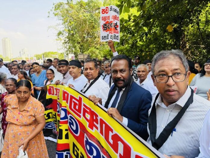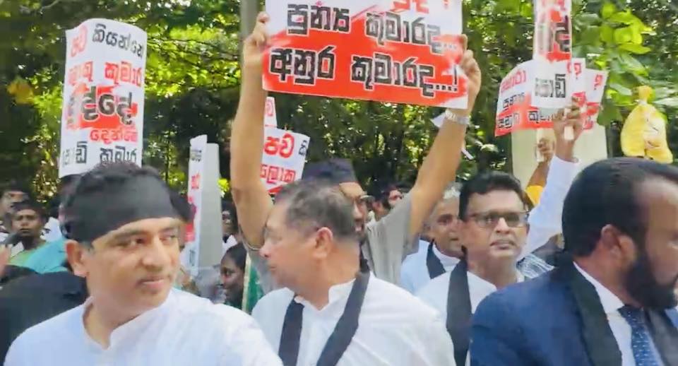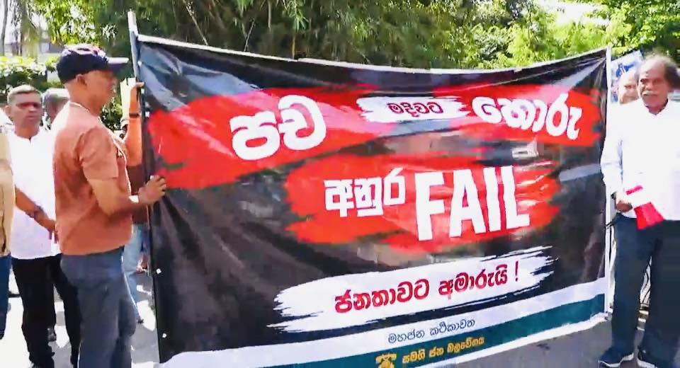 Opposition Leader Sajith Premadasa and SJB General Secretary Ranjith Madduma Bandara were present at the protest, along with several party MPs including Harsha de Silva, Mujibur Rahuman, Thalatha Atukorale, and Chamindrani Kiriella, as well as a large number of party supporters.